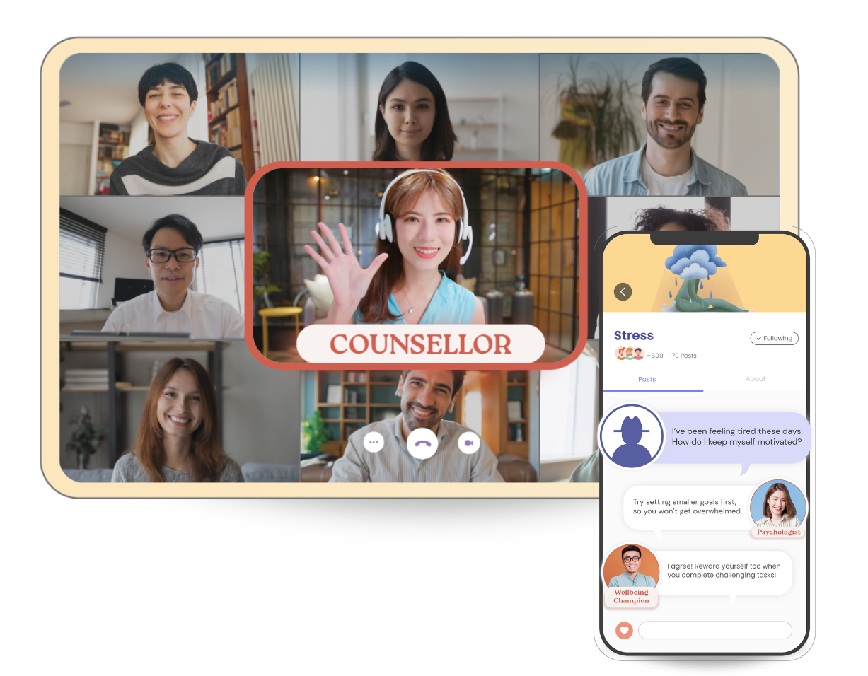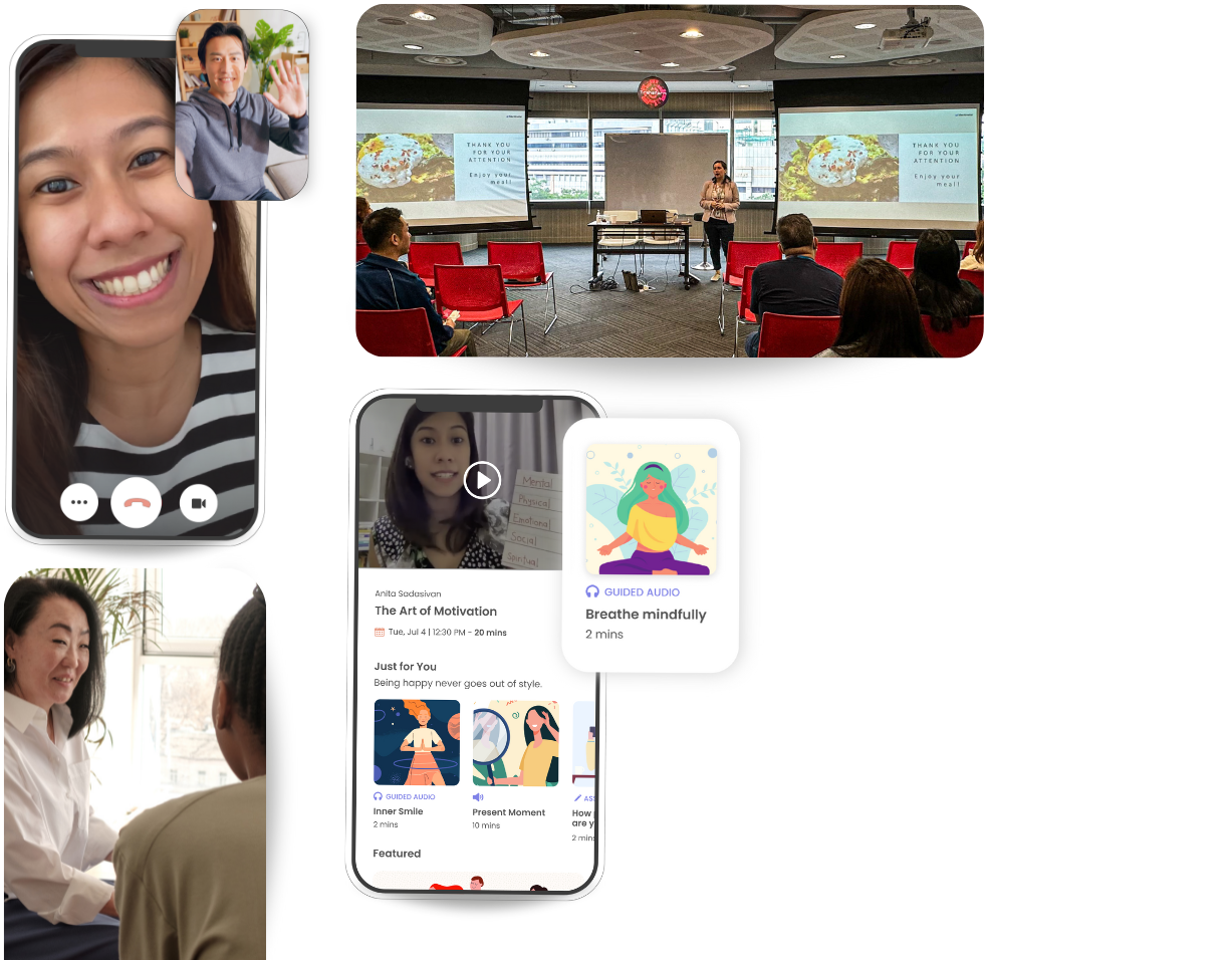 We connect employees with internal and external community groups to facilitate wellbeing-related interactions. And equip them with wellbeing knowledge and skills via psycho-education initiatives.
