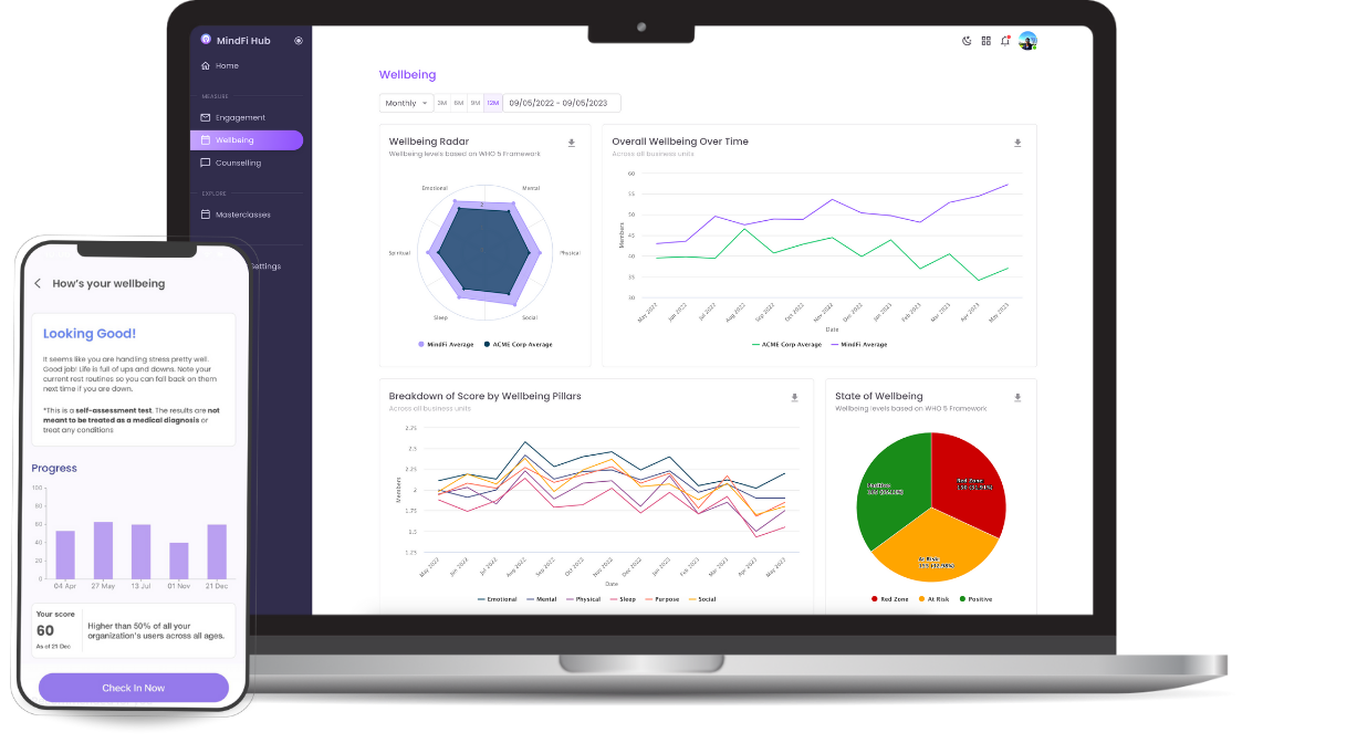 MindFi’s wellbeing program includes that and so much more like: a self-care app, education, training programs, & analytics for HR.